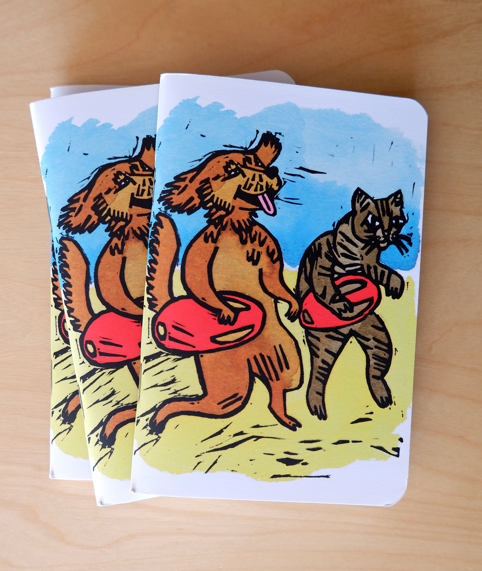 Caderno AZP - Associação Zoófila Portuguesa, com base em ilustração (gravura em linóleo com pintura em ecoline).