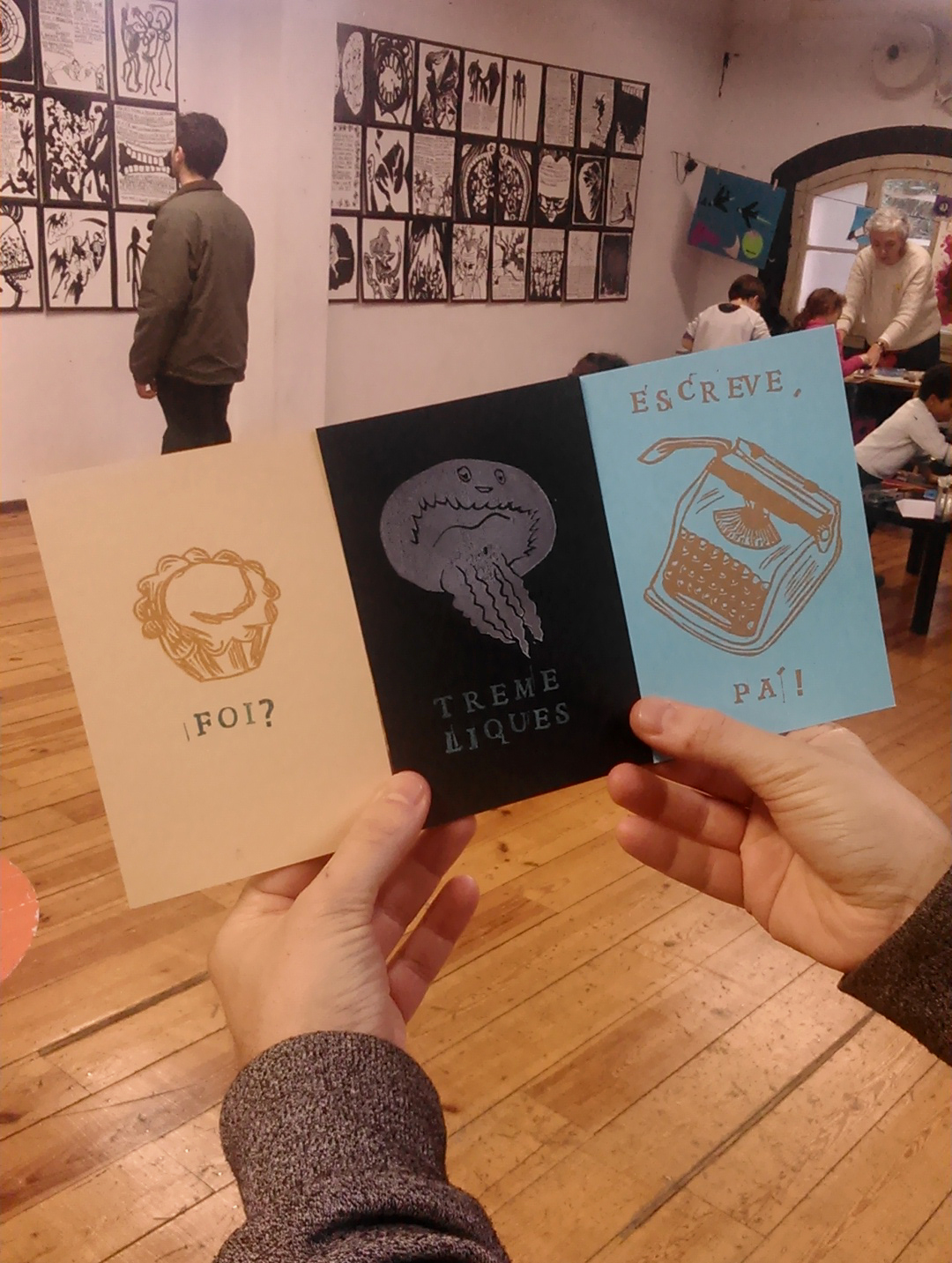 Postais 10x15 impressos com recurso a carimbos.